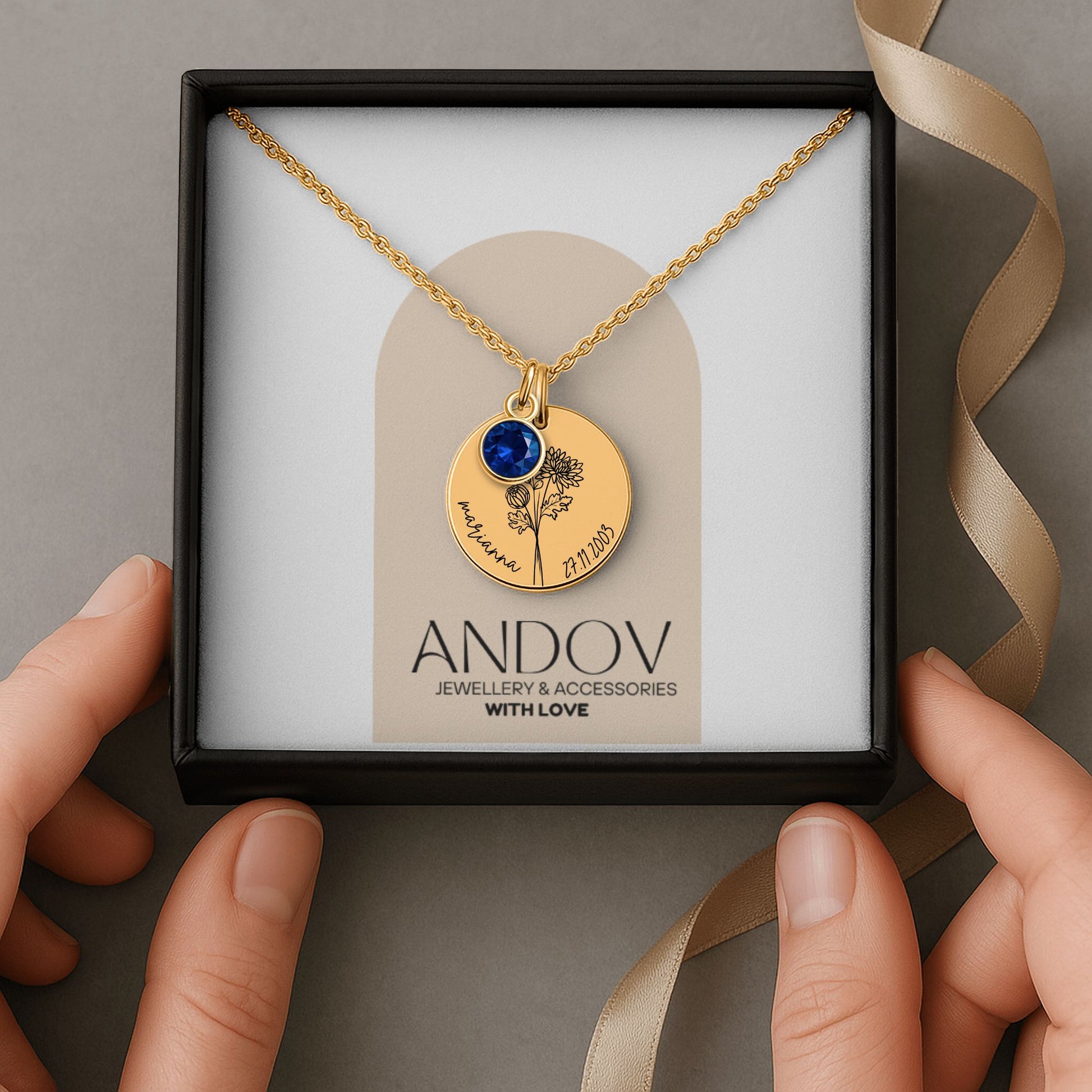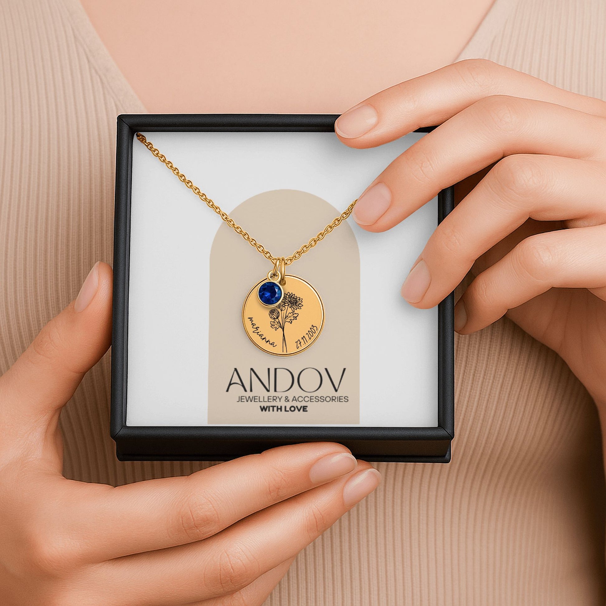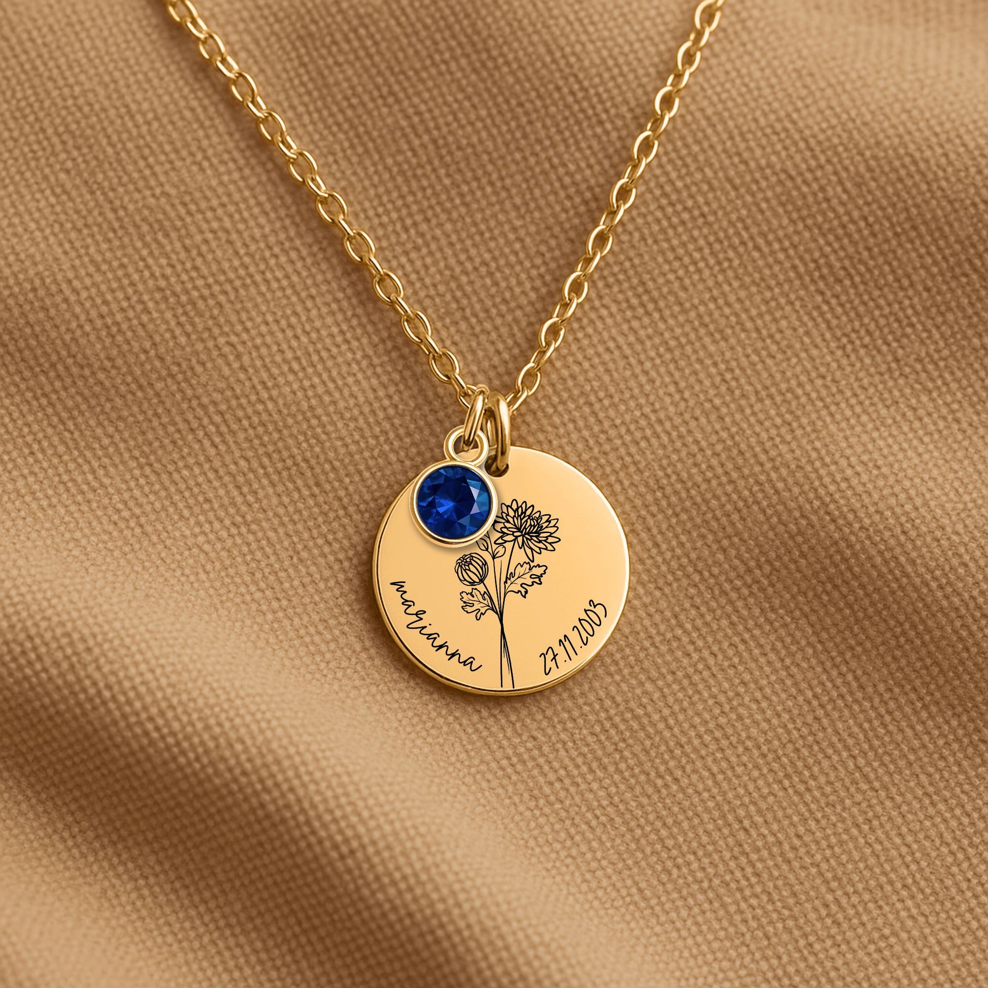 This delicate Personalized Birth Flower Necklace is more than just jewelry – it's a symbol of love, identity, and the beautiful traits they were born with. Each pendant features the birth flower of your choice, paired with a name or word that means the world to you.
